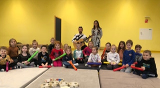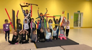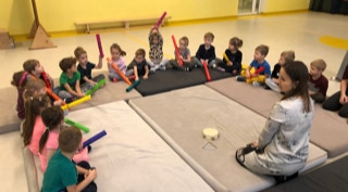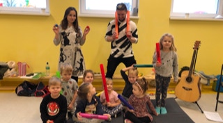 Poza ruchem nieodłącznym elementem zajęć jest śpiew, gra na instrumentach perkusyjnych oraz improwizacja.