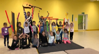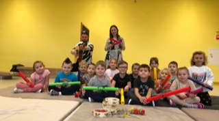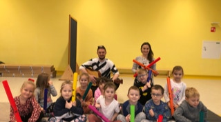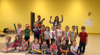 Poza ruchem nieodłącznym elementem zajęć jest śpiew, gra na instrumentach perkusyjnych oraz improwizacja.